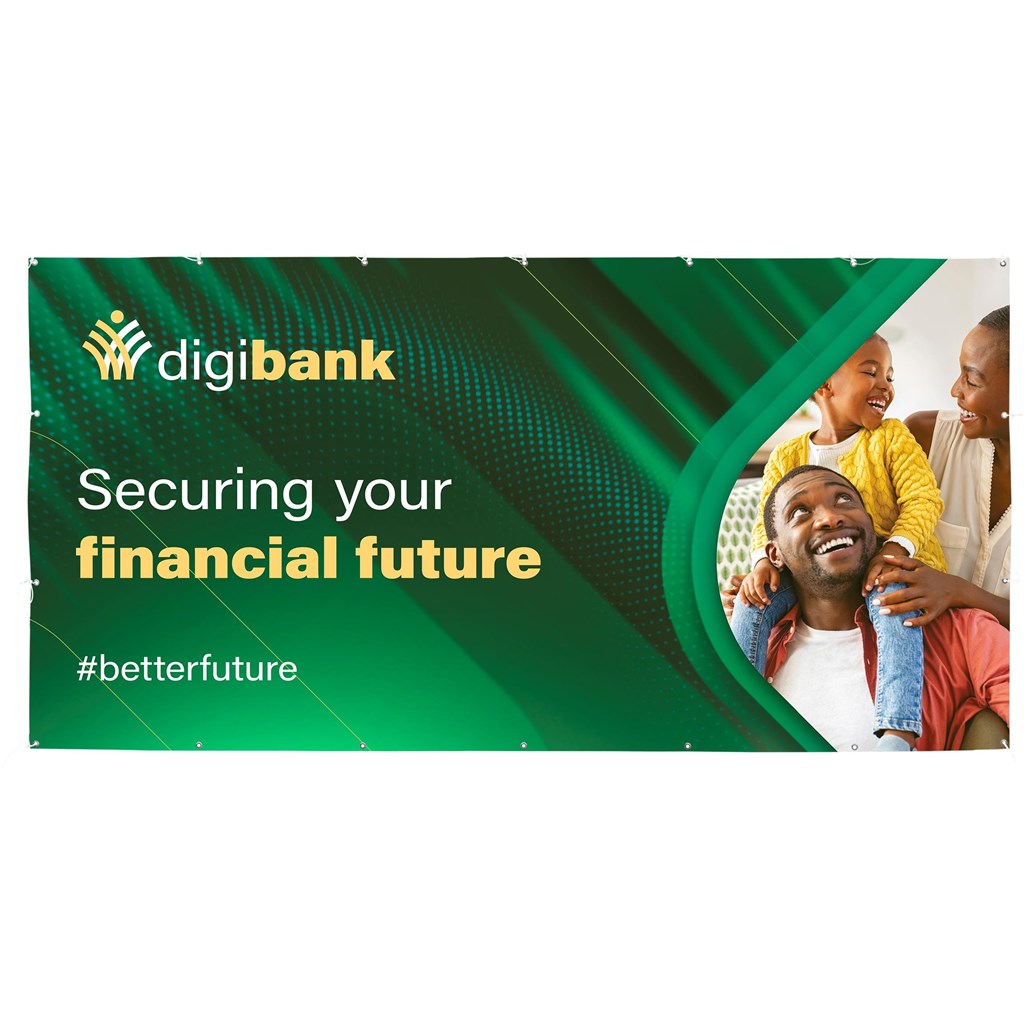 Full colour digital print onto 510g/m blockout PVC, finished with eyelets every 500mm and hem welded for strength.
